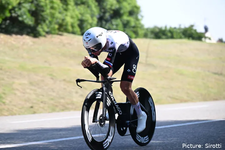 "La cuarta señal es "la bebida". ¿Quién lleva una botella llena para un TT de 20 km? Tadej ni siquiera lleva un gel extra, así que ¿por qué una botella? Mi teoría es que utilizaba la carrera como entrenamiento."