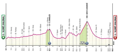Serán 160 kilómetros con salida y llegada en la ciudad de Vlorë (o Valona, como la llaman los italianos). En la primera parte del día habrá una subida de 2,2 kilómetros con una pendiente cercana al 10%, que en ese punto servirá más para acumular fatiga que para marcar diferencias. Aun así, algunos equipos podrían intentar endurecer la carrera en los puertos con la intención de dejar fuera de combate a varios sprinters. Sin embargo, esta vez hay un ascenso más exigente que podría marcar diferencias reales.