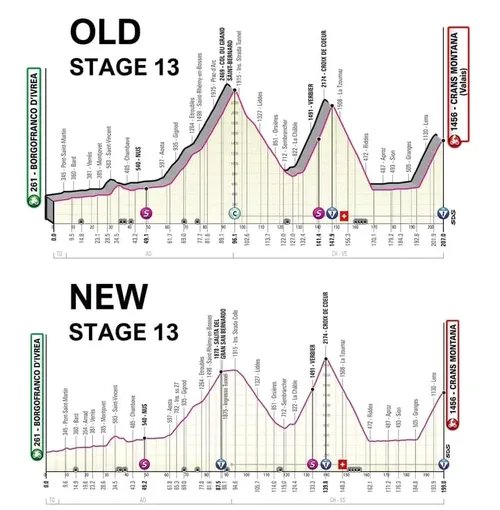 Giro de Italia ha modificado el recorrido de la etapa 13. Las nevadas caídas sobre el Gran San Bernardo en los últimos días han provocado que se recorte la ascensión por riesgo de avalanchas.
