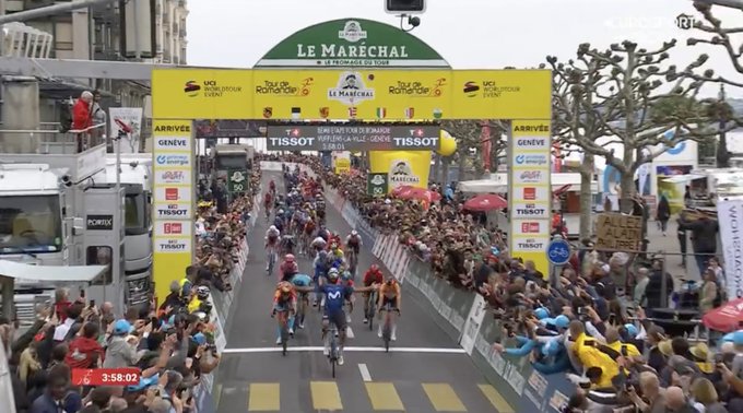 Precioso final de Romandía en el que Gaviria ha ganado a la "Gaviria", es decir, atacando con violencia antes de que nadie inicie el esprint, sorprendiendo a todos y aguantando gracias a su clase para llevarse el triunfo por delante de Nilias Arndt y Ethan Hayter.