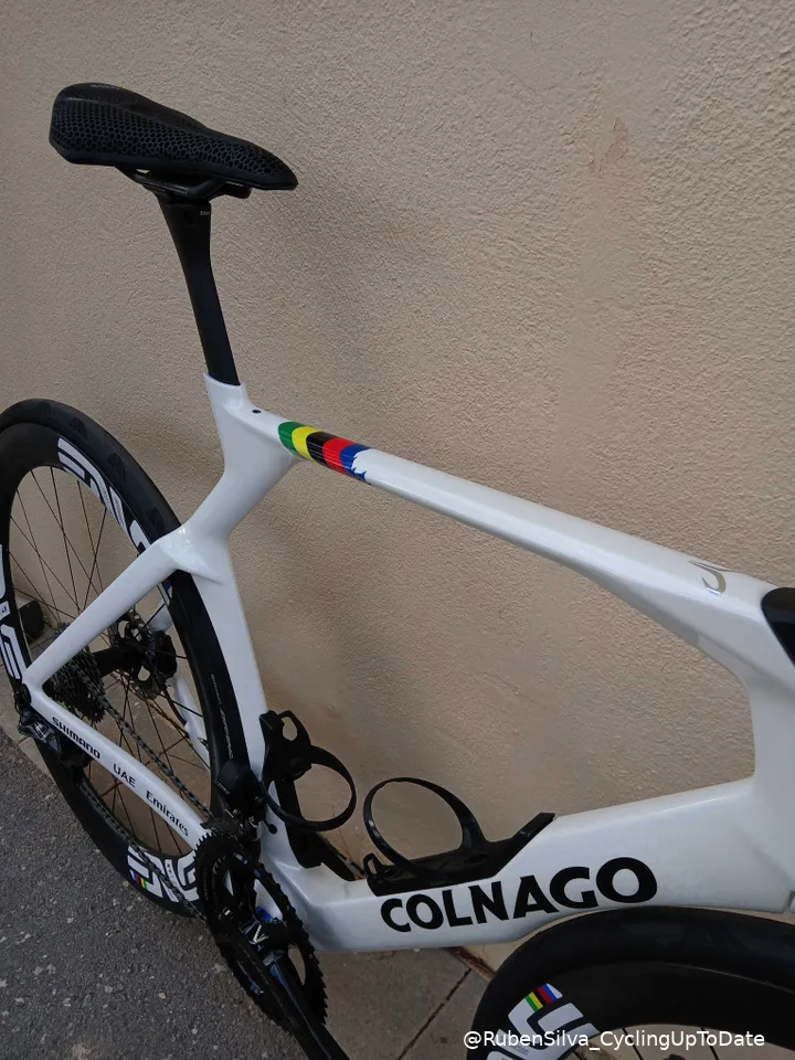 Colnago, la bicicleta es un 3,5% más rígida y presenta un manillar con una forma muy característica, así como notables detalles aerodinámicos, sobre todo en la parte trasera del cuadro. También se afirma que requiere 20 vatios menos que la V4R a una velocidad de 50 km/h y tiene un precio de salida de unos 10.000 euros. Para los corredores profesionales, con sus detalles específicos, probablemente sea una máquina aún más cara, pero que también puede conducir a grandes éxitos.