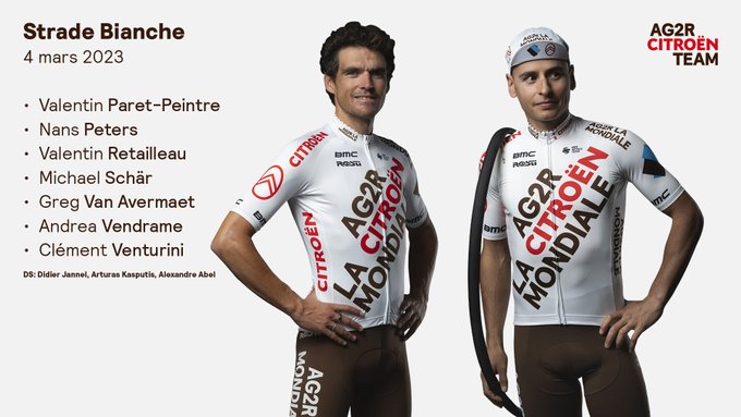Equipo AG2R Citroën para la Strade Bianche: Valentin Paret-Peintre,