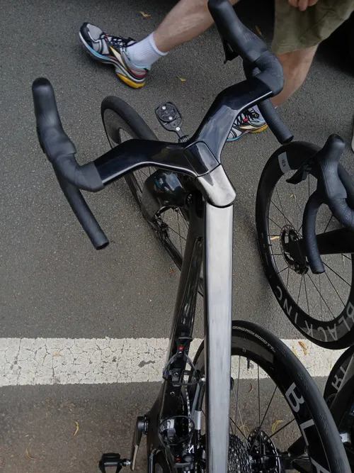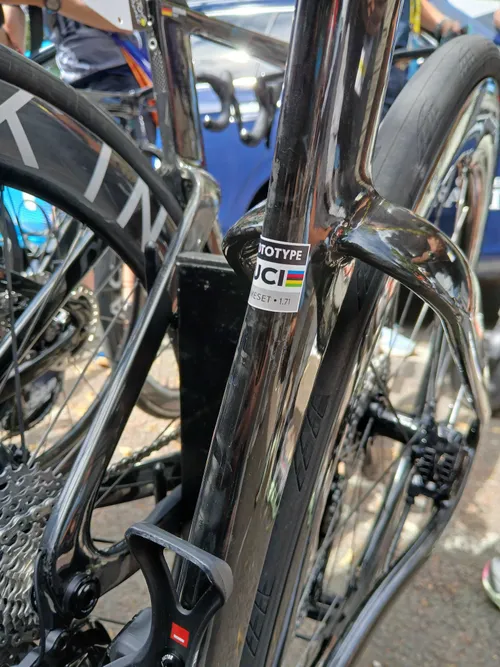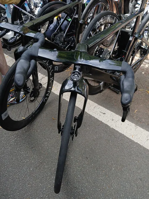 Entre sus características más destacadas se incluyen una horquilla de bayoneta sorprendentemente profunda, un tubo de sillín festoneado y una tija de sillín casi vertical. La configuración se completa con ruedas Black Inc de 62 mm y neumáticos Continental GP5000 TT.