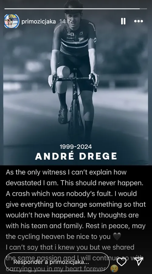 "Como el único testigo no puedo explicar lo devestado que estoy. Esto nunca debería haber ocurrido. Nadie tuvo la culpa de la caída. Daría todo por poder cambiar algo para que no hubiera sucedido. Mis pensamientos están con su equipo y con su familia. Descansa en paz, que el ciclismo sea bueno contigo en el cielo. No puedo decir que te conociera, pero compartimos la misma pasión y te llevaré en mi corazón para siempre".