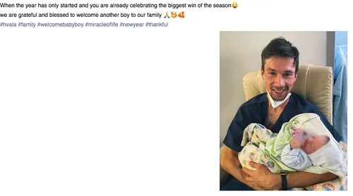 "Cuando el año no ha hecho más que empezar y ya estás celebrando la mayor victoria de la temporada", compartió el esloveno en un post de Facebook. "Estamos agradecidos y bendecidos de dar la bienvenida a otro niño a nuestra familia". Este es el segundo hijo de la pareja, después de que hace unos años dieran a luz a Lev.
