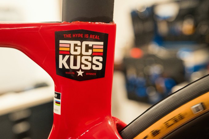 Y es que cuenta con 3 pequeñas franjas roja, rosa y amarilla en la horquilla y la palabra "Deserve" (merecer) también en rojo, rosa y amarillo haciendo claro homenaje al hecho de que Kuss ha corrido las 3 grandes vueltas durante el año y ha sido decisivo en todas: ayudó a Primoz Roglic en el Giro, a Jonas Vingegaard en el Tour y va a llevarse la Vuelta. El último detalle es una especie de parche justo abajo del sillín que reza: "The Hype is real - GC Kuss - Vuelta Winner".