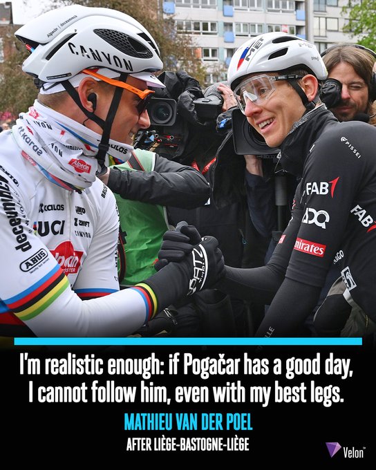 Full respect between these two 🤝🤩 Even Mathieu Van der Poel admits he can't follow an attack from Tadej Pogačar 😲 📸 Getty Images