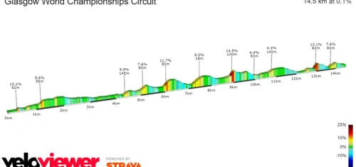 Mundial de Glasgow. Tendrá lugar en un circuito urbano que dará paso a que los corredores luchen por conseguir el maillot arcoíris.