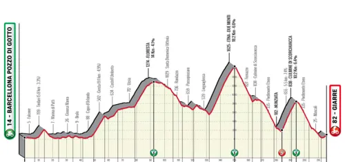 A continuación, tras un pronunciado descenso, los corredores volverán a subir al volcán, pero esta vez terminarán la ascensión mucho más abajo. Sin embargo, la subida al Culmine di Scorciavacca es de 10,2 kilómetros al 6,4% y termina a sólo 21 kilómetros del final. A partir de ahí, el camino hasta la meta es casi completamente cuesta abajo, pero la subida hasta la línea de meta en Giarre tiene algo de pendiente.