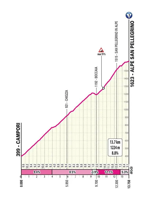 La etapa presenta una brutal ascensión al principio del San Pellegrino en Alpe, de más de 14 kilómetros al 8%, una de las más duras de la carrera. Pero si no se aprieta el gatillo, lo más probable es que tengamos un día para la escapada, mientras que los corredores de la CG se marcarán unos a otros en el accidentado final hacia Castelnuovo Ne Monti.