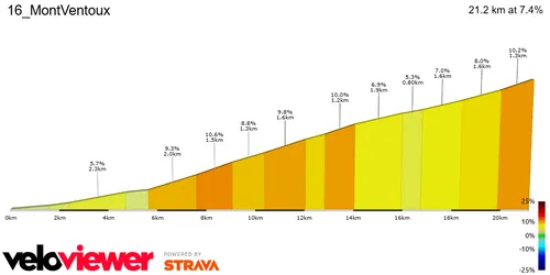 El primer día de la última semana tiene un perfil mayoritariamente llano y luego un final brutal en el Mont Ventoux. La salida en Montpellier y toda la etapa pueden ser sensibles al viento, por lo que los equipos siempre tendrán que tener mucho cuidado; sin embargo, si este no es el caso en el día, entonces será un caso de mantener toda la potencia de fuego hasta la base de la ascensión final - y podríamos esperar salidas masivas de potencia en el ascenso final entonces.