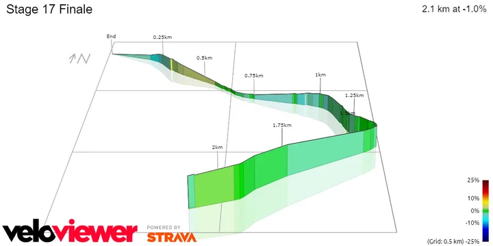 A partir de ahí se suaviza. El resto de la etapa es llana en su mayor parte. En realidad no es muy técnica, ni muy rodadora, sólo un final tranquilo en el que es posible realizar una persecución organizada después de lo que podría ser una caótica primera mitad del día. El final no es nada técnico.