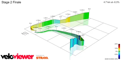 Los 2,2 kilómetros finales presentan dos pequeñas subidas. Una de ellas se sitúa ya en el kilómetro final y no será técnica, pero ofrece la oportunidad de un posible ataque tardío, además de complicar la vida a los esprinters.
