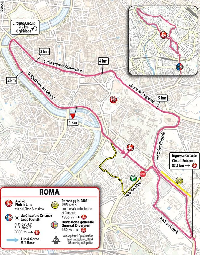 El circuito será bastante rápido, un poco técnico a veces, pero sin duda veremos un sprint masivo junto al Circo Massimo.