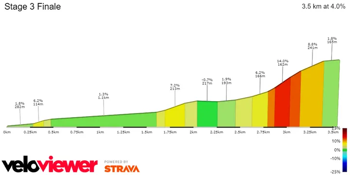 La subida a Karlow es de 7 kilómetros al 5%, terminando a falta de 18,5 kilómetros, con una meseta justo después de la cima. Tras un pequeño descenso, el pelotón aún se enfrenta a un explosivo final en cuesta en el que de un modo u otro se prometen diferencias y es probable un final emocionante. Los 900 metros finales tienen una media del 8% y las pendientes suben hasta el 14% antes de bajar gradualmente hasta la línea de meta.