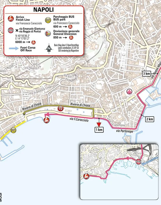 La etapa 6 terminará en Nápoles, siguiendo el éxito de los últimos años. Sin embargo, después de algunas etapas con repechos, esta vez hay un enfoque más llano. La jornada será larga, 227 kilómetros en total, pero los hombres rápidos no deberían tener dificultades en los kilómetros finales para disputarse la victoria entre ellos.