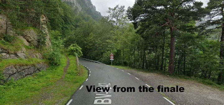 Esta subida es brutal. 14,7 kilómetros al 6,9%, es una de dos mitades. Los primeros 7 kilómetros son a un constante 5-6%, luego hay una pequeña bajada incluso, y luego los 6 kilómetros finales que promedian un 10% de media. Aquí, los grados suben a un loco 18% y no es una rampa corta. Esta subida es la más dura de la carrera y podría hacer saltar por los aires toda la carrera, que termina a falta de 60 kilómetros.