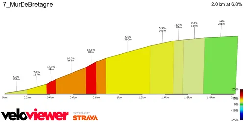 A falta de 15,5 kilómetros, los corredores subirán por primera vez el Mur, y justo después habrá una segunda cima. Pero después, en su mayor parte cuesta abajo, la subida a la cima final será muy rápida y furiosa, con todos utilizando a sus hombres para entrar en las empinadas rampas en cabeza del pelotón.