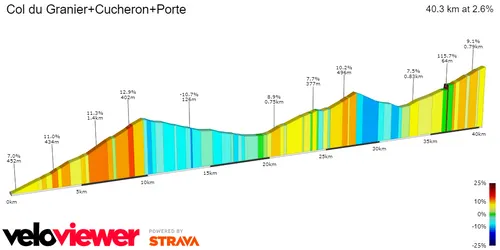 Habrá tres subidas principales hacia el final del día, siendo la más dura el Col du Granier, de 9,6 km al 8,6%. Este puerto abre la verdadera escalada del día, con una cima a 48 kilómetros del final, y tres ascensiones consecutivas sin ningún tramo llano entre ellas. Le sigue el Col du Cucheron, de 7,8 kilómetros al 6,1% y que termina a 30 kilómetros del final.