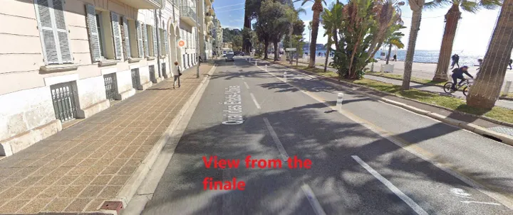 Este es el Col des Quatre Chemins, parte del Col d'Éze. Son 3,6 kilómetros al 8,8%, pero la mitad final es bastante más empinada. Las rampas suben hasta el 18%, brutal y suficiente para crear diferencias. La carrera puede terminar en esta subida, que alcanza su cima a falta de 9 kilómetros y a partir de ahí es casi cuesta abajo todo el camino hasta la línea de meta en el Promenade des Anglais.