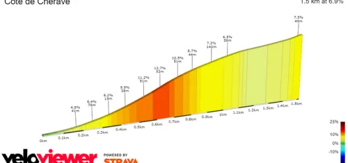 En la última vuelta tenemos la Côte d'Ereffe con 2Km al 5,8%, que hace cumbre a falta de 19,5 kilómetros. En cuanto a la Côte de Cherave, alcanza su cima a sólo 6 kilómetros, lo que puede abrir un poco más la carrera. Son 1,5 km al 6,9% y con pendientes de dos dígitos, no es una etapa fácil. Seguirá un pequeño descenso y una rápida subida a Huy, hasta la subida final.