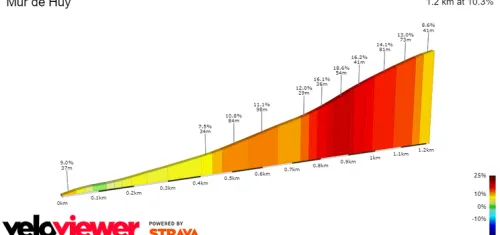 Una subida que se hace cada vez más empinada. Es un esfuerzo anaeróbico puro, y es ideal para los puncheurs ligeros. La subida es de 1,2 kilómetros al 10,3% y se hace cada vez más empinada hacia la línea de meta. Es un esfuerzo que aumenta gradualmente durante todo el recorrido. La lucha en la parte inferior de la subida es cada año muy intensa, y una vez allí suele ser una subida hacia la fuente. Los 300 metros finales son muy empinados, por lo que los ciclistas suelen intentarlo un poco antes, pero es poco probable que un ataque a distancia tenga éxito.