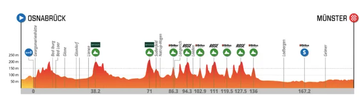 Pese a las colinas que los ciclsitas van a encontrarse por el recorrido, todo lo que no sea una llegada masiva será una gran sorpresa, ya que el último tercio de la carrera es prácticamente llano e históricamente los que han ganado en las calles de Münster son velocistas. Hace dos años lo hizo Mark Cavendish y en 2022 un hombre que intentará reeditar su victoria este año, el neerlandés del