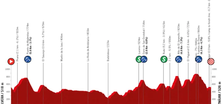 Vuelta a Andalucía volverá a estar caracterizada por un perfil montañoso, con muchas subidas cortas en la segunda parte de la carrera y un explosivo final cuesta arriba en Iznájar.