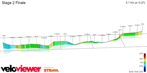 Lo más probable es que se produzca un sprint masivo. Aunque no es técnico, el último kilómetro y medio es algo cuesta arriba, siendo lo más duro a la entrada del último kilómetro. Los metros finales tendrán una pendiente del 3%, definitivamente no una regular.