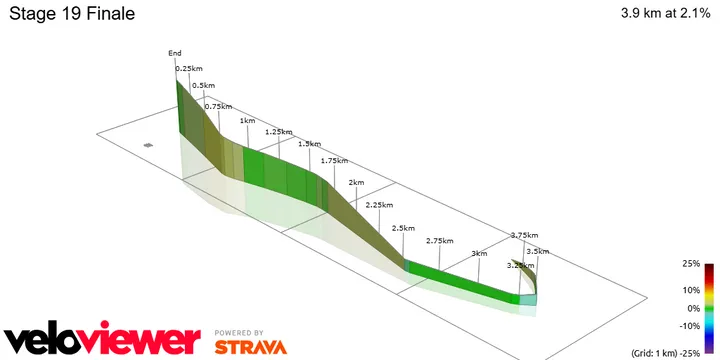 Los últimos 2,3 kilómetros estarán marcados por una pendiente media del 3%, en una carretera completamente recta que obliga a un esfuerzo constante y sin respiro. El repecho se endurece ligeramente en los metros finales, lo que abre la posibilidad de ver sorpresas si algún corredor logra anticiparse al sprint o si los velocistas más puros no logran resistir el ritmo elevado hasta el final.