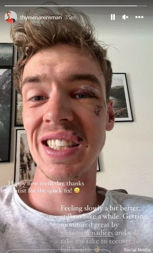 INEOS Grenadiers, tuvo suerte y no se encontró ninguna fractura. A pesar de ello, el ciclista de 23 años quedó muy maltrecho y magullado. El lunes, el largo camino de Arensman hacia la recuperación dio sus primeros pasos al visitar al dentista para someterse a un tratamiento dental de urgencia.