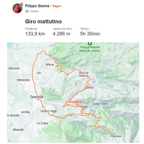 Según los datos de Strava, el grupo recorrió 133,9 km en su vuelta a Sierra Nevada, empleando cinco horas y media en el trayecto. La próxima carrera de Pogacar será la Lieja-Bastoña-Lieja el 21 de abril, y ese Monumento será su último desafío antes de su llegada al Giro de Italia.