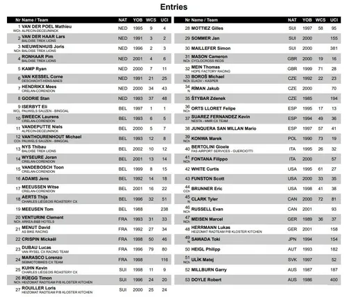 participantes. La Copa del Mundo de ciclocross finaliza este domingo, 28 de enero, en el circuito de Hoogerheide. El trazado neerlandés acogerá a un conjunto de estrellas en los terrenos donde la temporada pasada se celebró el Mundial.