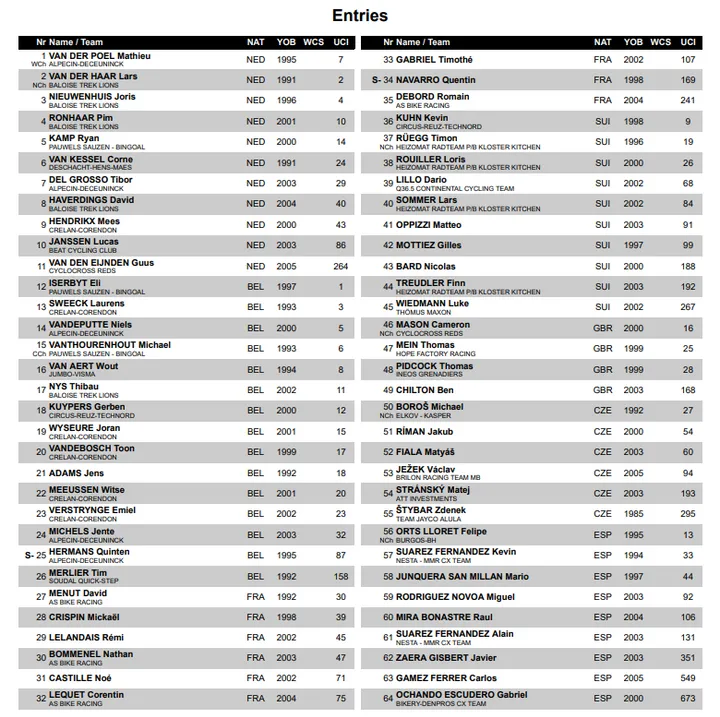 Mathieu van der Poel, Lars van der Haar, Joris Nieuwenhuis, Pim Ronhaar, Eli Iserbyt, Laurens Sweeck, Michael Vanthourenhout,