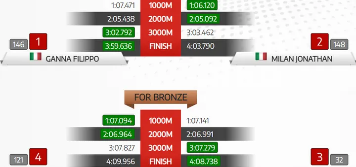 Milan salió volando, y en un momento dado llegó a liderar durante casi un segundo y medio. Sin embargo, el experimentado Ganna no se amilanó y, poco a poco, fue recortando la distancia hasta que, antes de que nos diéramos cuenta, se puso en cabeza.