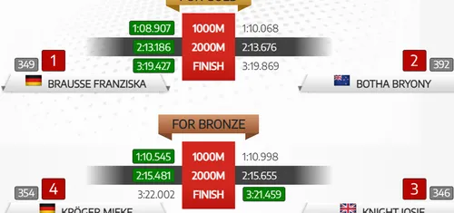 Josie Knight consiguiera el bronce en una emocionante carrera con la alemana Mieke Kroger, Franziska Brausse salió a la pista con el objetivo de que no hubiera una segunda decepción para Alemania. Para ello tendría que vencer a la neozelandesa Bryony Botha.